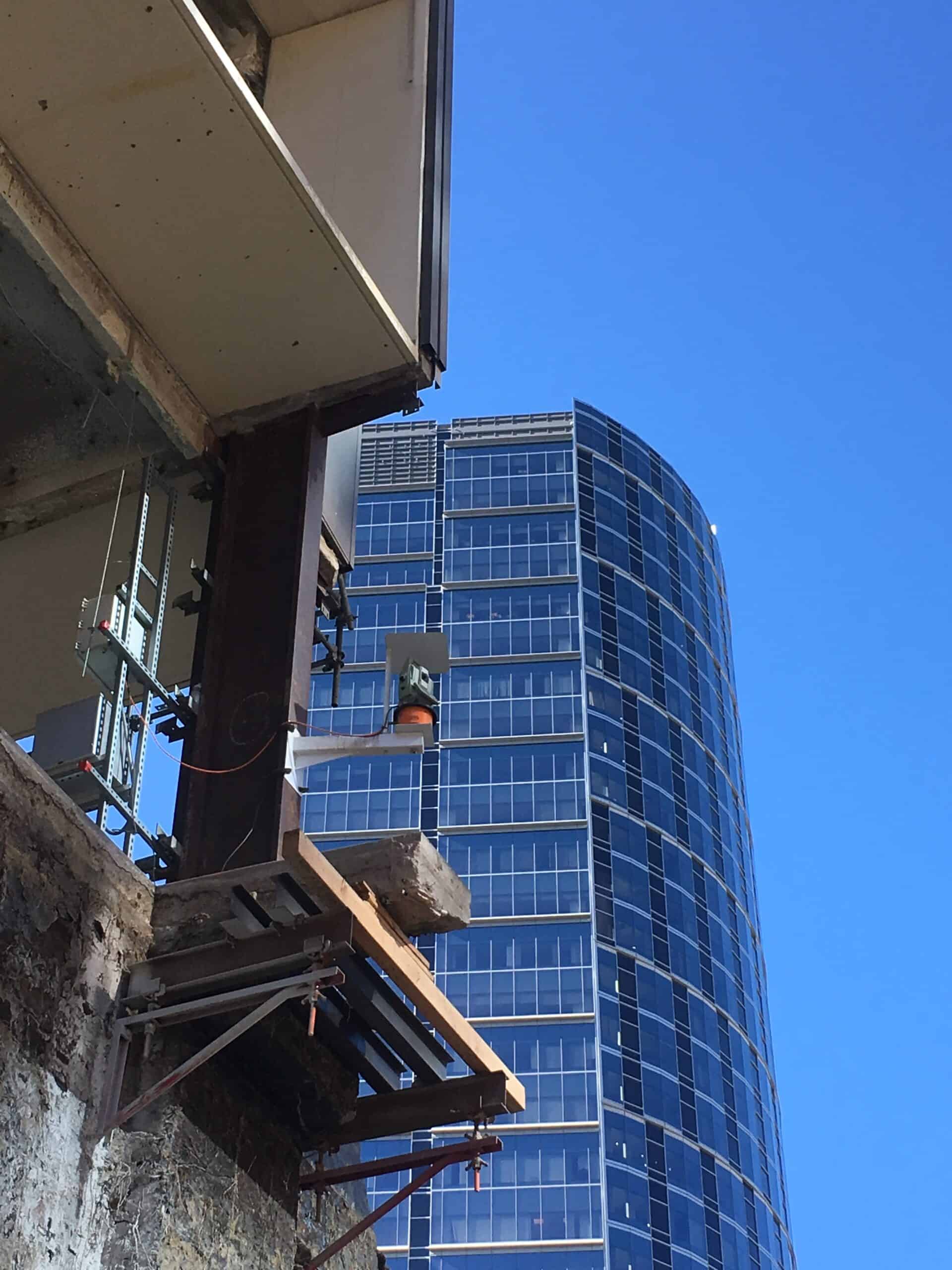 Three (3) AMTS with cameras were installed at selected locations to monitor the displacements of the SOE, the existing Hotel, and the adjacent streets. Due to the site constraints, the three AMTS were configured as a group using the more reliable reference network available.
